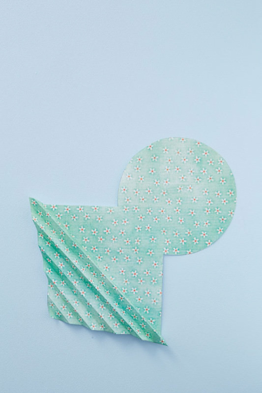 - Належить скласти заготовку гармошкою. Крок гофрування можна для верхньої і нижньої деталей вибрати різний. Так виріб буде виглядати цікавіше.