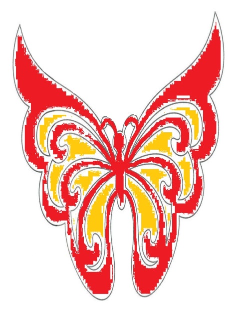 Використовуючи цей трафарет, можна без особливих зусиль вирізати з паперу різних кольорів всі деталі. Самий складний процес – робити збірку метелики: