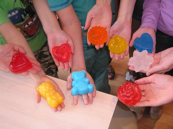 Застигає таке мило швидко, за 8-12 годин. Діти можуть проявити свої творчі навички у процесі додавання барвника і в підборі формочок для майбутнього мила.