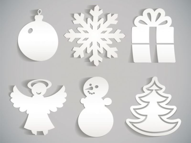 - Трафарети новорічних витинанок: ажурні ялинки та ялинкові іграшки з паперу, зображення Діда Мороза, зимові пейзажі, з дитинства знайомі сніжинки. Така робота чудово прикрасить вікно в новорічне свято і допоможе створити святкову атмосферу.