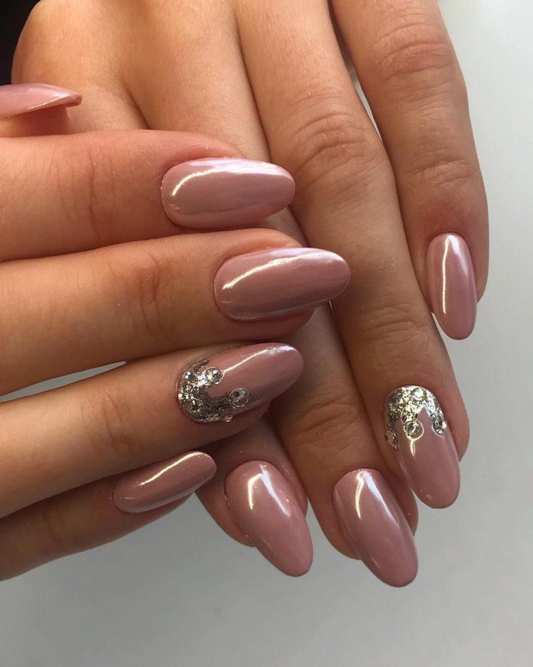 Такий манікюр (фото новинок представлені нижче) включає непередбачувані і розкішні варіанти. Тут має місце стильний манікюр зі стразами. Різні камінчики, бульонки, камифубуки, блискітки, микроблеск, фольга, акрилова пудра і ліплення – ідеальні складові шикарного манікюру. Інкрустацію стразами роблять на двох або одному нігті, а в основі може бути однотонний, матовий, місячний манікюр або френч.