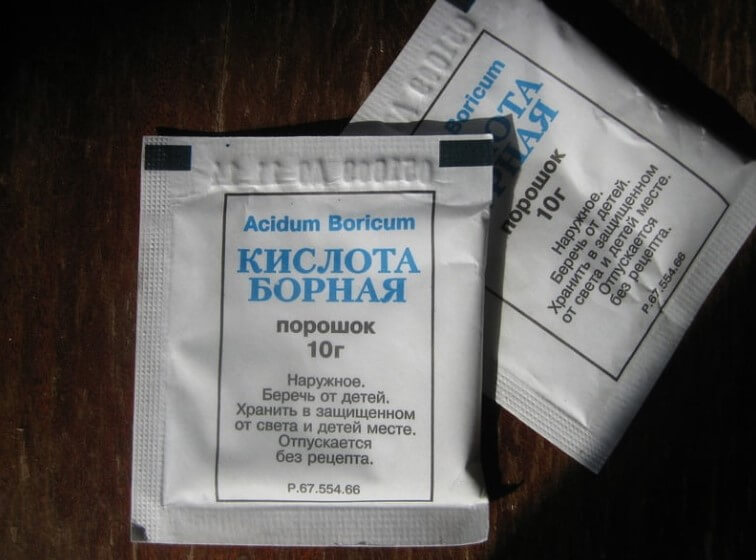 Борна кислота — дешеве дієвий засіб, яке в короткий час допоможе позбутися від мурашок. Існує два способи застосування: кислота в чистому вигляді і як долучення в принади. Приманка готується так: 1 частина кислоти змішати з 2 частинами цукру, додати 10 частин води, розлити по кришок з-під пластикових пляшок і розкласти в улюблених місцях комах.