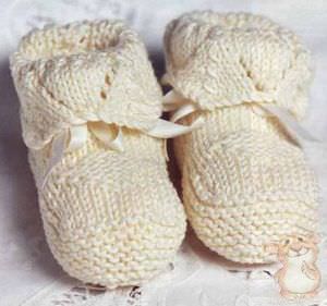 Спочатку візьміть тонкі спиці, дізнайтеся виберіть розмір і колір. Вив’язування почнемо з підошви. Наберемо 40 повітряних петель, з них потім вийде два ряди платочної в’язки. Тепер ми на наступних 4 грядках накидаємо ще петлі з головної сторони (одну з двох країв і дві посередині). В результаті у нас повинно вийти 56 повітряних петель. Нові 4 ряду пров’язуємо нитками іншого кольору. В’язка підошви завершена. Самі пінетки в’яжемо трошки по-іншому, всю роботу робимо за схемою: