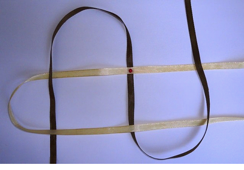 - Вільний світлий кінець загинаємо і направляємо паралельно коричневою стрічки.