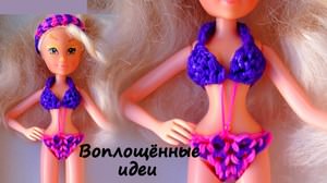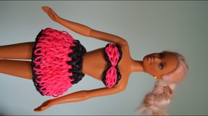 Купальник, спідничка нарядна, браслетик, сумочка, яскрава капелюх, колготки і туфельки — все це цілком реально сплітати з різнокольорових гумок.