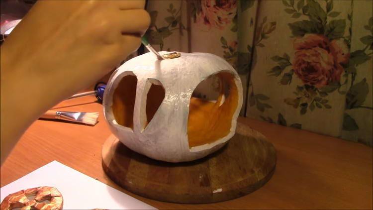 - Далі фарбуємо ще раз поверхню гарбуза білою акриловою фарбою.