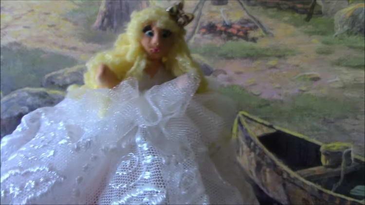 - Ліпимо з пластиліну Попелюшку. Волосся можна зробити з пряжі, а сукня з красивого мережива. На голову можна пришити або приклеїти корону або інший красивий елемент. У Попелюшки немає ніг, закріплюємо її в кареті за допомогою зубочисток.