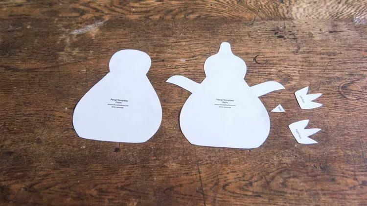 - Ножицями вирізаємо з викрійки тулуб пінгвіна (2 шт.), ніжки (2 шт) та дзьоб.