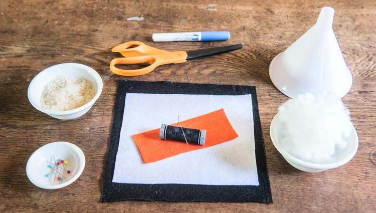 - невеликий шматок м’якої фетрової тканини чорного, білого та оранжевого кольору;
