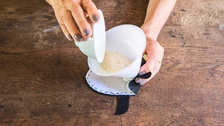 - У цей отвір вставляємо лійку для пляшки і засипаємо через неї рис.