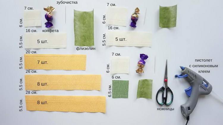 - Зробіть із зеленої гофрованого паперу листочки і рівномірної вклейте їх у букет для краси.
