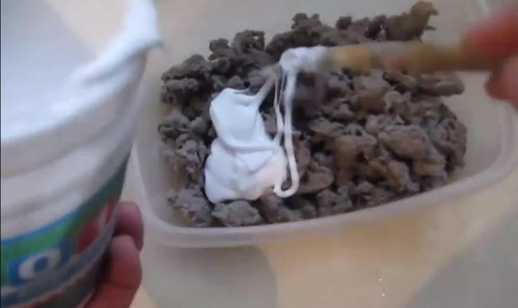 - У масу додайте 40-50 мл клею ПВА, добре перемішайте. У результаті виходить паперове тісто.