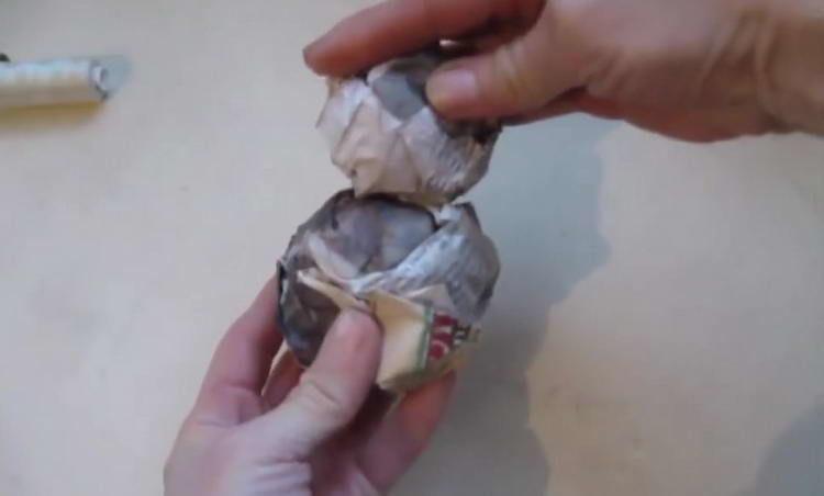 - Щоб кулі з паперу тримали форму, обмотайте кожен з них білими нитками (1 невелика котушка), злегка ущільнюючи кулі.