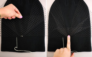 Закріпимо вуаль на виробі спереду посередині парою стібків і вишуканий капелюшок з вуаллю готова.