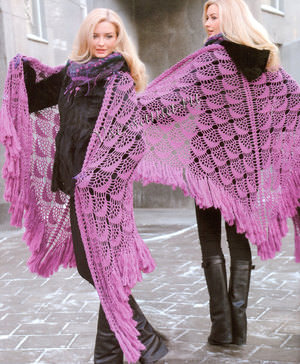 Ажурна накидка є незвичайною і повітряної через зміщення акцентів на віяла і видозмін окремих елементів. Для створення ажурною накидки необхідно вибирати досить щільну пряжу з-за невеликої кількості рядів у візерунку.