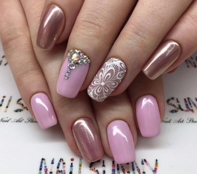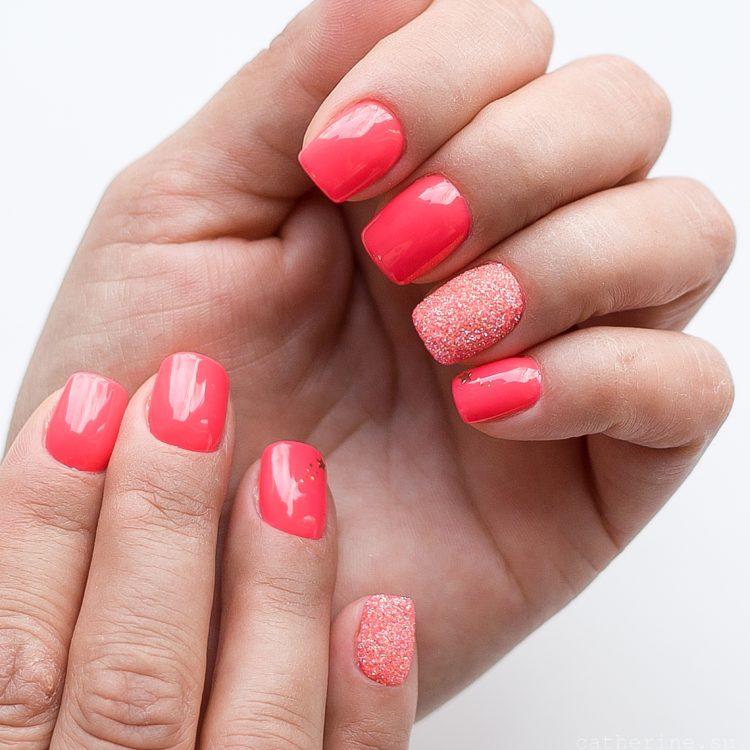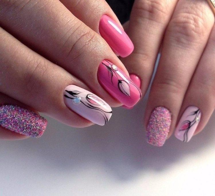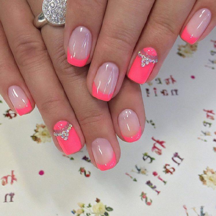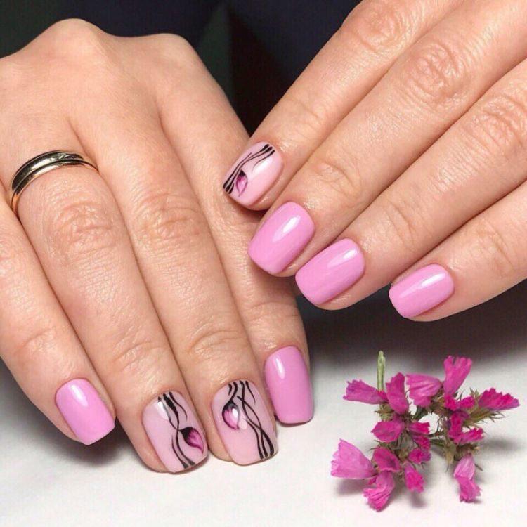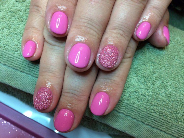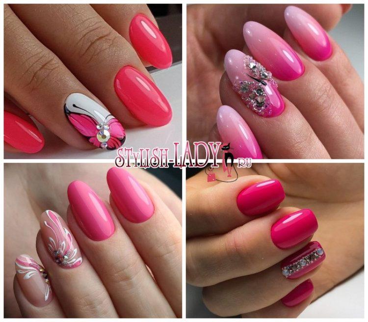 Використовуючи рожевий гель на нігтях, можна малювати ніжні малюнки в спокійних тонах або робити рожевий френч. Яскраві красиві нігті прекрасно підійдуть для літнього відпочинку, а модний дизайн з блискітками можна використовувати на безіменних або середніх пальцях. Короткі нігті не варто фарбувати занадто яскраво, так як візуально вони будуть виглядати ще коротше.