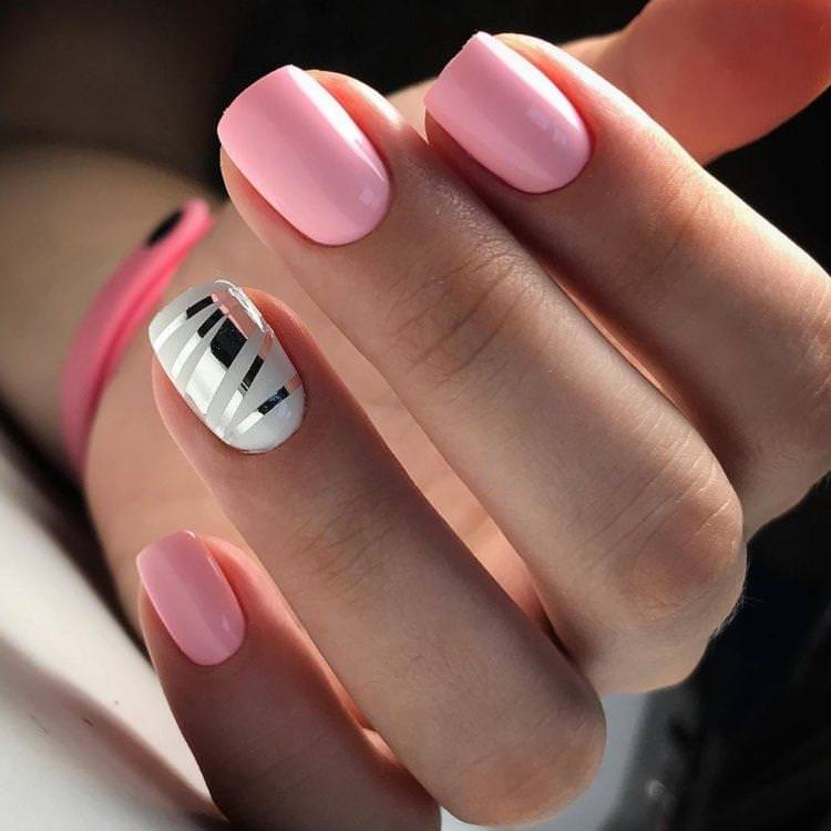 Світла троянда з сріблом чудово підійде для маленьких нігтів. Ніжно рожевий манікюр також можуть використовувати ділові леді. Дизайн нігтів рожевий завжди буде виглядати стильно при правильно підібраному кольорі. Манікюр у рожевих тонах не завжди повинен бути яскравим і насиченим. Рожевий френч завжди може прийти на допомогу, а манікюр рожевий з сріблом внесе родзинку в дизайн.