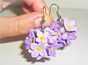 Найбільш популярним прикрасою, для виготовлення якого часто застосовується полімерна глина, є сережки. З численних яскравих кольорів матеріалу можна зробити величезну кількість цікавих сережок, і це стане просто знахідкою для модниць: не потрібно витрачати багато грошей на купівлю дорогих прикрас, адже завжди можна купити набір полімерної глини і зробити з неї багато чудових речей за менші гроші. Наприклад, пластика Сонет випускається в Росії і одна із самих недорогих. Все, що потрібно при ліпленні сережки з полімерної глини — трохи вільного часу, тяга до творчості і бажання зробити собі приємне, подарувавши цілий набір різних сережок. Дуже красиво виглядають сережки кисті, де верх прикрашений квіточками з полімерної глини. Зараз модно комбінувати різні матеріали — сережки можна зробити з поєднання квітів з полімерної глини і річкових перлів.