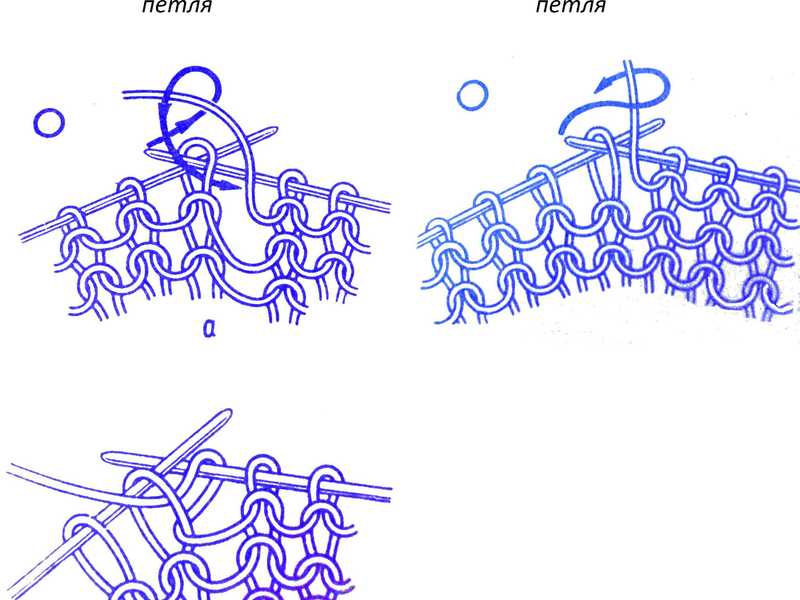 пров’язуємо перший ряд виключно лицьовими петлями;- у другому ряду, крім кромок петель, зробіть зворотний накид, потім знімаємо одну петлю на спицю і потім пров’язуємо ще дві лицьові петлі.