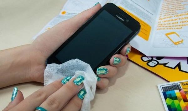 - легкими рухами втирати склад, що вийшов на екран телефону;