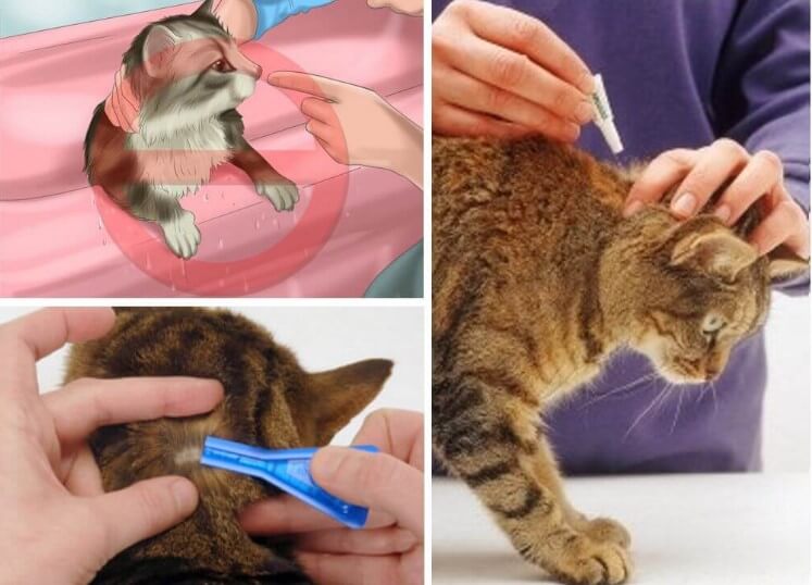 Для двомісячних кошенят підходить більшість існуючих засобів від бліх. Ви можете купати кошеня з антипаразитным шампунем для кошенят і використовувати деякі види крапель на холку. Але у випадку якщо кошеня ще харчується материнським молоком, краплі на холку використовувати не можна. Кішка може злизати препарат з вовни, та його частина потрапить в молоко, в результаті негативно вплинувши на кошеня.