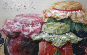 Матеріалом буде серветка, на якій зображені баночки з варенням.