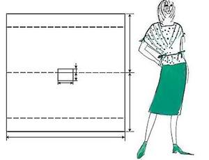 складаємо навпіл відрізок;- вимірюємо об’єм грудей і стегон. Напівобхват більшою мірки вимірюємо внизу тканини і робимо вгору лінію, залишаючи до краю близько 25 см;