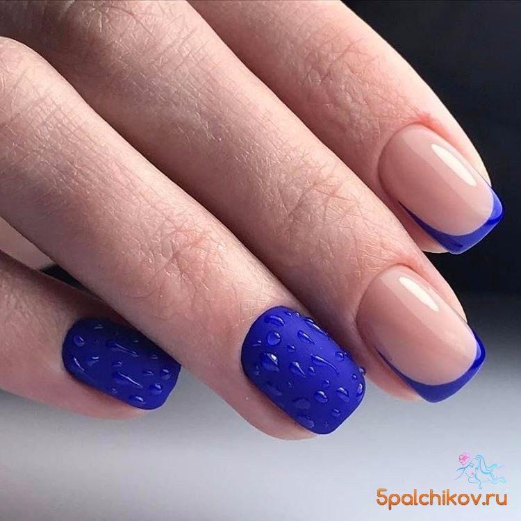 Манікюр в синіх тонах буде дуже модний, якщо зверху покрити нігті сріблом, а на безіменні пальці нанести матовий топ. Новинки і тенденції мають на увазі в собі і нанесення яскравого манікюру на короткі нігті.