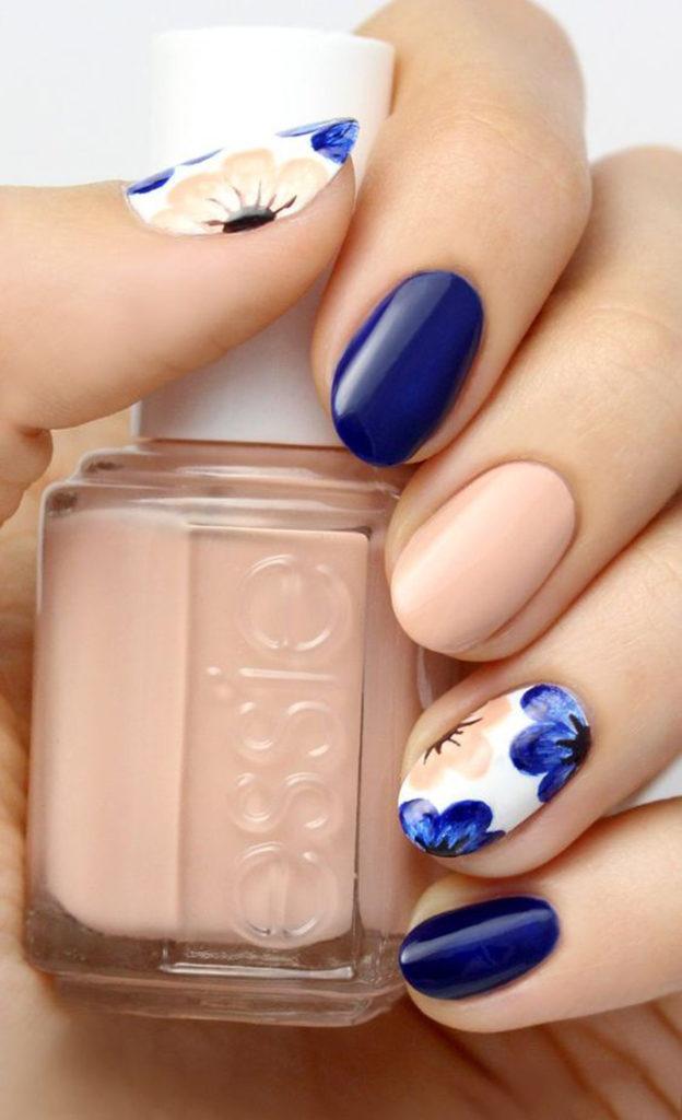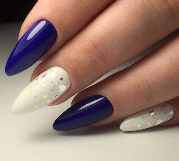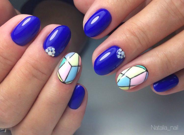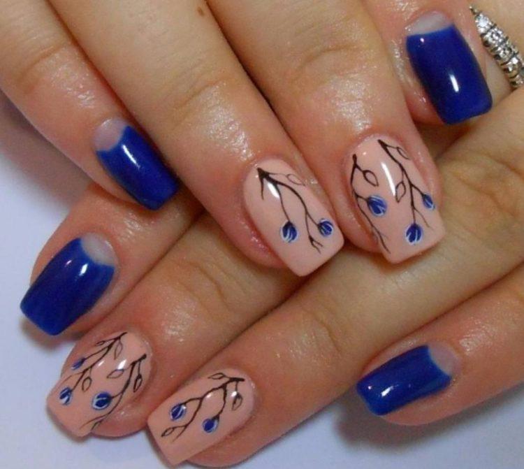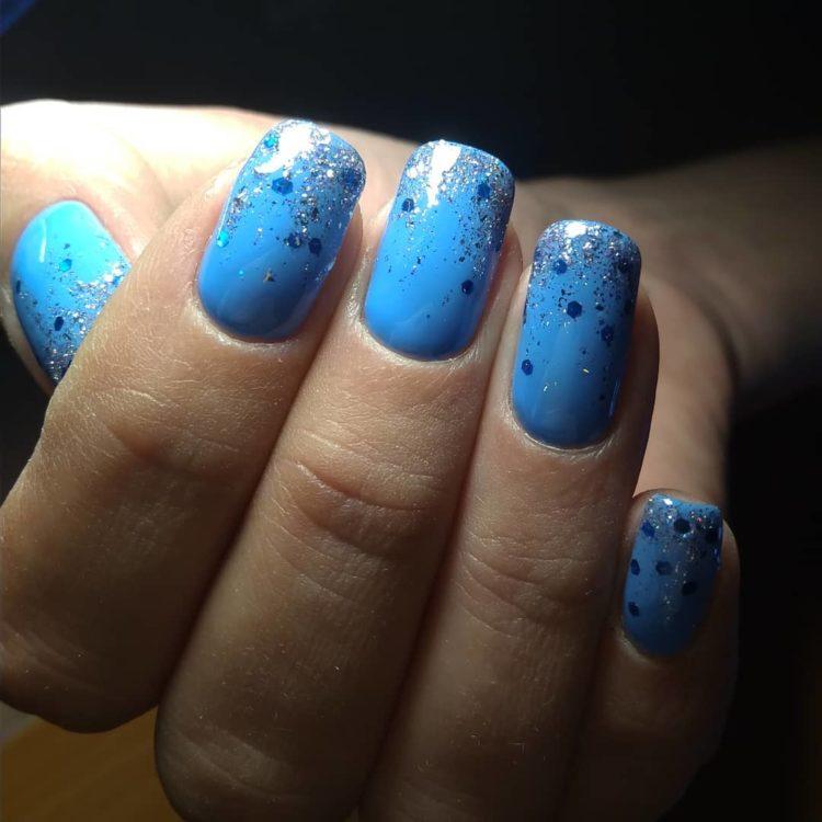 Якщо ви не боїтеся експериментів, тоді цілком можна звернутися до темно, світло і нейтрально-блакитним відтінкам, об’єднавши їх в манікюрі. Синім також можна виділити і один ніготь. Використовувати кольоровий гель можливо і при створенні манікюру в стилі френч.