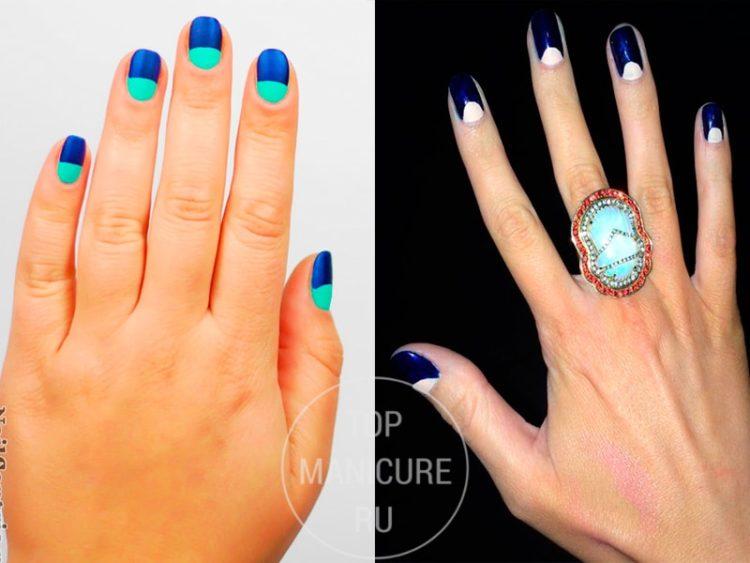 Покрити короткі нігті синім кольором можна, використовуючи темні відтінки, але тоді краще вибрати популярний омбре. Такий темно синій манікюр буде виглядати незвично і стильно. Синій френч і синій манікюр з дизайном можна цілком об’єднати, це буде виглядати розкішно. Манікюр в синіх тонах може вибрати для себе кожна, однак, наскільки стриманим він буде, залежить від ваших уподобань.
