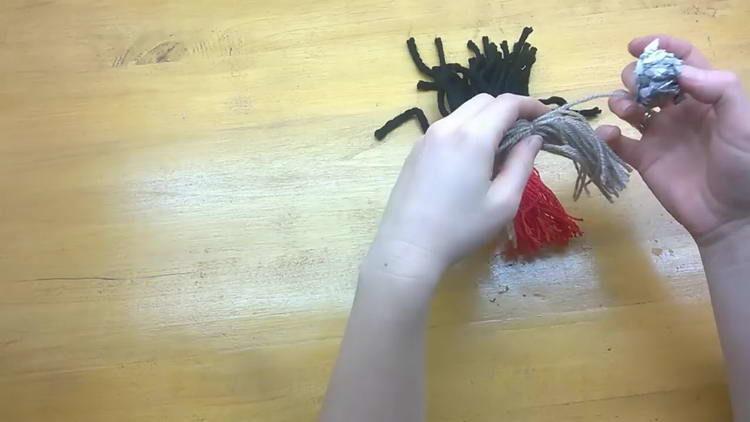 - Розрізаємо з одного боку намотування, і сірі нитки пов’язуємо посередині.