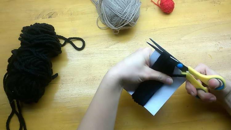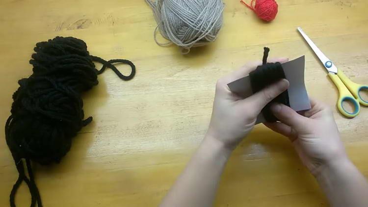- На картонний шаблон 9*12 сантиметрів намотуємо по довжині 10 обертів чорної пряжі. Шаблони рекомендується робити з щільного картону або паперу, щоб він не м’явся.