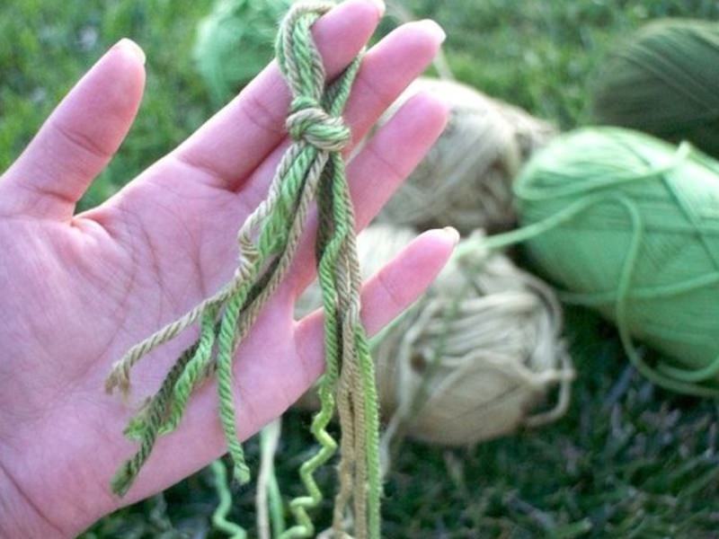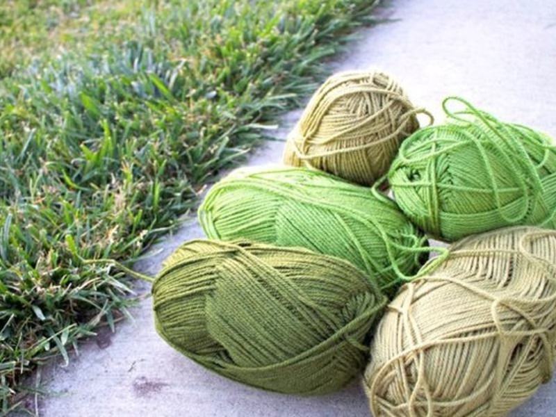 - пряжа зелених відтінків — п’ять мотків. Для того, щоб заощадити на матеріалі, можна використовувати акрилову пряжу, яка помітно дешевше в порівнянні з напіввовняної;