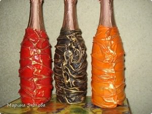 Можна використовувати різні техніки. Деякі матеріали, які можуть знадобитися при оформленні пляшок шампанського: