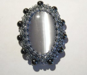 - Якщо з кабошона, оплетений бісеринками, буде зроблено ювелірні прикраси (сережки, каблучка або кольє), металеві застібки не повинні містити нікель. Слід віддати перевагу якісній фурнітурі, виконаної з гіпоалергенного металу.