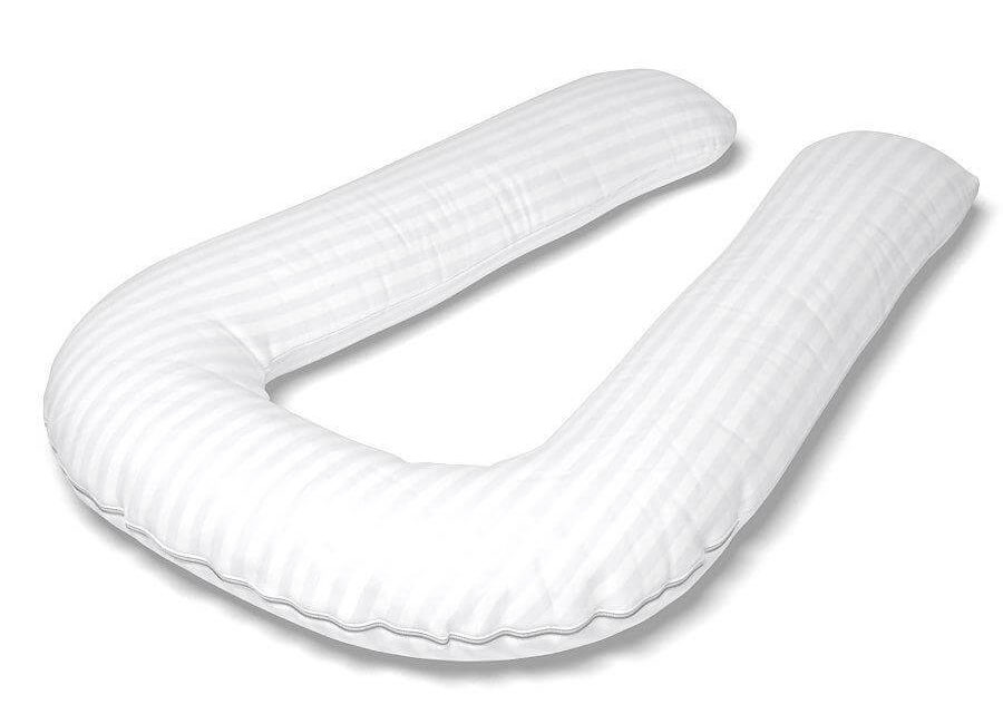 Представлена у вигляді подовженої підкови. Підтримує тіло як з боку живота, так і зі спини. Дозволяє легко перекинутися на інший бік, не тягнучи подушку за собою. Під час сну закиньте на неї руки і ноги, обійміть. U-подібна модель зручна не тільки під час сну. Читаючи книгу, переглядаючи телевізор, займаючись рукоділлям, укладіть пристосування навколо себе: це зніме втому і розслабить тіло. При виборі такої форми враховуйте її габарити. Якщо ваш зріст більше 160 см, а ваша ліжко невелика, U-подібна модель, ймовірно, не підійде.