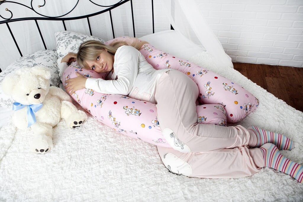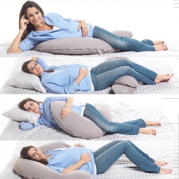 Для повноцінного відпочинку гінекологи радять вагітним жінкам спати на боці, поклавши 4 прості подушки навколо себе (під голову, живіт, спину, між ніг). Для зручності такий набір замінюють подушкою для вагітних. При цьому не має значення, модель та тип наповнювача. Головна рекомендація лікарів — натуральний матеріал бавовняного чохла і синтетичного наповнювача. При покупці вимагайте у продавця сертифікати відповідності.