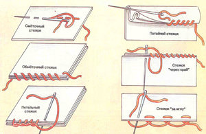 Кожна техніка виконання стяжков і рядків має свої ім’я: гладь, лічильний хрест, тамбурний шов, французький вузлик. З того, як називають стібок, нескладно зрозуміти, як він виглядає, назвіть їх людині, яка ніякого відношення до шиття або вишивання не має, і він напевно зможе самостійно їх відшукати на картинці. Стібки для шиття і вишивки бувають різні. Але ми з вами зараз розглянемо.