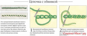 - Тамбурний шов. Цей вид стібків для вишивки нагадує ланцюжок з петель. З допомогою тамбурного шва можна вишити всі контури квіткових пелюсток, а потім заповнити їх вишивкою, використовуючи стібки інших типів. Даний вид вишивки також дуже простий. Всі тонкощі тамбурного шва легко освоїть навіть дівчинка.