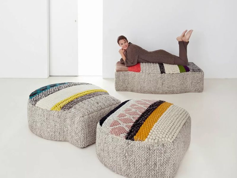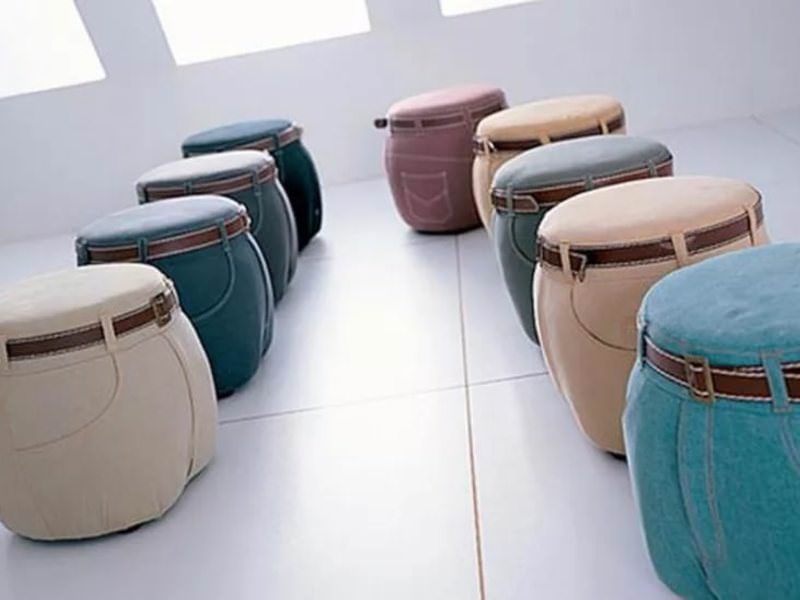 У високих людей, які сідають на маленьке крісло, коліна піднімаються, оскільки сидіння занадто низька. Поставивши пуф на стілець, вони зможуть розслабити ноги таким чином, щоб не відчувати, що сидять на корточках. Це кімнатна виріб має позитивне ставлення до навколишнього середовища, тому що в нашому випадку воно виготовляється з вторсировини.