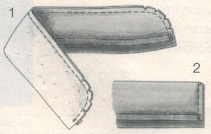 Для початку роботи креслимо прямий куточок, вершина якого – точка А. Від крапочки А вертикально вгору відміряємо чотири сантиметри і відзначимо точку А1. Виміряємо довжину горла (обхват горловини +два сантиметри на шви і повне облягання). Відкладемо довжину горла з точки А1 і поставимо крапку Б. Плавною круглої лінією, з’єднаємо точки Б і А1 на відстані 1,3 (точка Б) відстані від точки Б. Потім від А1 вгору відкладемо потрібну ширину комірця. Відзначимо точку А2. Перевіряємо, щоб А1А2 було одно ВВ1. Це десь шість сантиметрів. Тепер від А2 вліво зазначимо відстань у два сантиметри і поставимо А3. Потрібно з’єднати А3 і А1. Верхній край нашого коміра оформимо за спеціальною моделі через крапочки А3 і Б1.- Для поліпшення жорсткості в комірець підкладаємо ущільнювач.