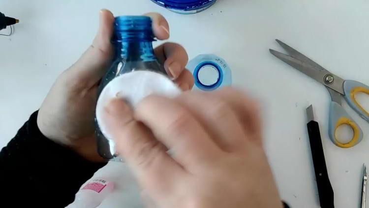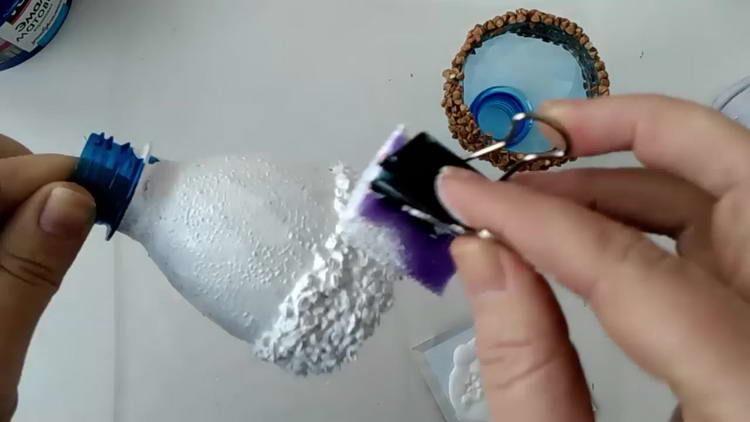 - Після того, як клей висох, беремо наші новорічні поробки своїми руками з пластикових пляшок і фарбуємо білою емаллю з допомогою спонжа зовні і всередині. Залишаємо на деякий час, щоб дзвіночки висохли.