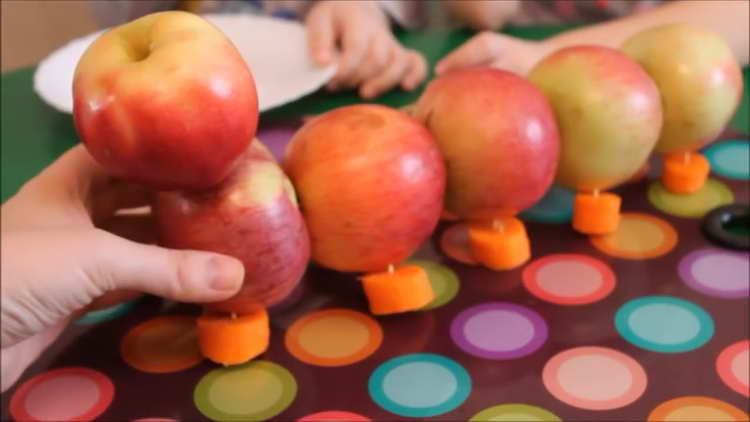 Якщо вашій дитині в дитячому садку дали завдання принести щось, зроблене своїми руками для виставки або ярмарки, а у вас немає часу для збору природного матеріалу і виготовлення складних конструкцій, вас виручить гусениця з яблук.