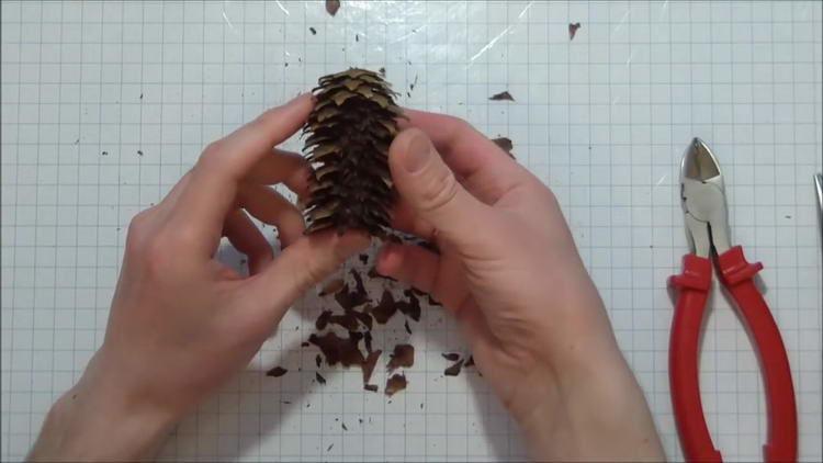 - Візьміть суху шишку і зріжте її низ кусачками.