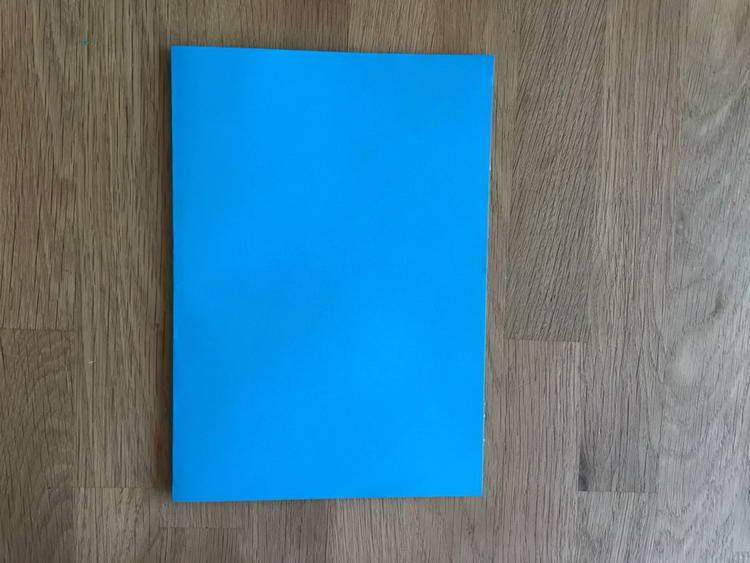 - Покладіть на робочу поверхню 1 аркуш синього картону формату А5. Щоб картон при роботі не зрушувався, покладіть на поверхню тканину або силіконовий килимок кухонний, можна використовувати гумовий килимок для мишки.
