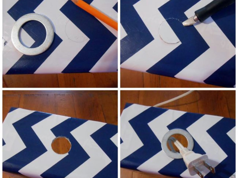 - Проробіть в стороні коробки стільки круглих дірок, скільки розеток знаходиться на перенесенні, і один збоку. Через цю дірку буде проходити провід від перенесення, а через інші дроти від зарядних пристроїв. За бажанням можна обклеїти коробку кольоровим папером, задекорувати її стрічками або іншими штучками для декору.