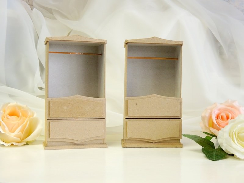 - Всередині великої коробки зробіть невеликі дірочки для сережок і прикріпіть спеціальні стрижні для браслетів, ланцюжків та інших довгих прикрас або замініть їх на звичайні дерев’яні шпажки.
