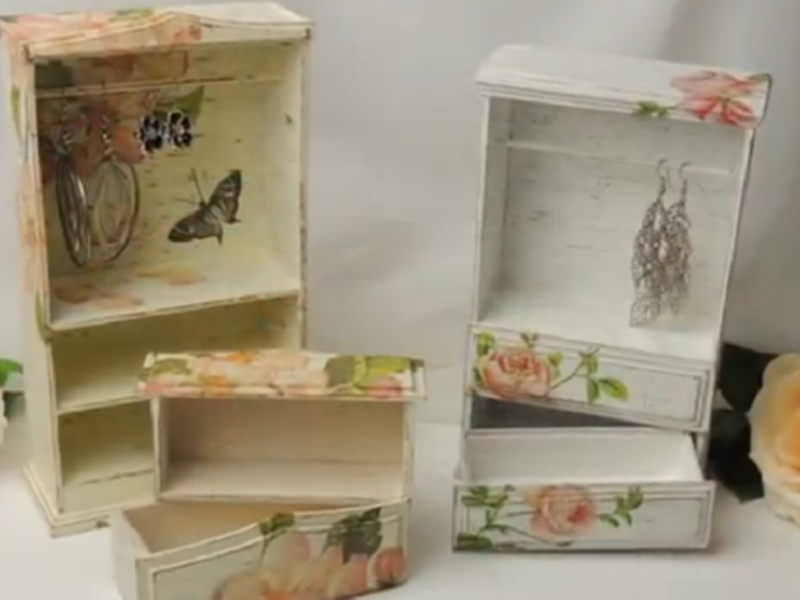 Жінкам, у яких вдома зберігається багато різних прикрас напевно знайома ситуація, коли їм нема куди їх складати так, щоб не втратити і при необхідності відразу ж знайти потрібний прикраса. Цю проблему прекрасно вирішують спеціальні підставки для прикрас, на які необов’язково витрачати гроші в магазинах, досить відшукати непотрібну коробку і трохи змінити її. Наступний майстер-клас підкаже, як це зробити: