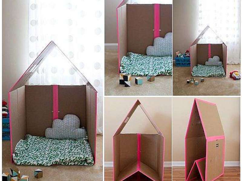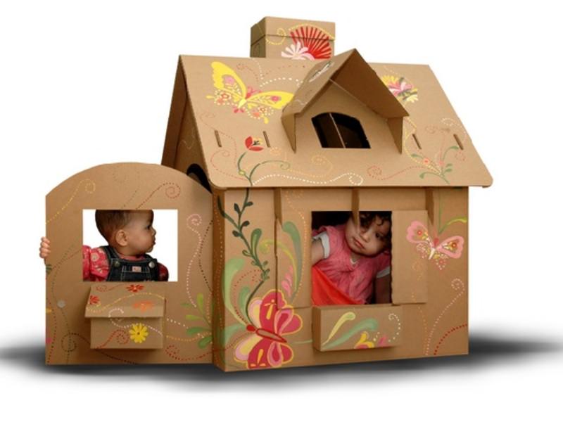 Багато дітей мріють про своєму невеликому будиночку, в якому вони могли б ховатися, грати і просто гарно проводити час. Такий новий будинок можна зробити самостійно з звичайних картонних коробок. Для цього знадобиться кілька коробок великих розмірів. Докладніше дивіться у майстер-класі нижче:
