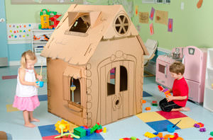 Багато дітей мріють про своєму невеликому будиночку, в якому вони могли б ховатися, грати і просто гарно проводити час. Такий новий будинок можна зробити самостійно з звичайних картонних коробок. Для цього знадобиться кілька коробок великих розмірів. Докладніше дивіться у майстер-класі нижче: